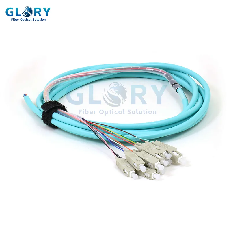 Modelis: OM4 Pigtail daugialypiai optiniai kabeliai - 6 Strand Fiber SC Multimode 50\/125 OM4, 100 GIG - 900 μm, spalvotas 6- pluošto košės su 18- colio lūžiais, 3 metrai, 3 metrai.